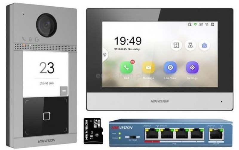 Egylakásos IP video-kaputelefon szett, DS-KV8113-WME1(C)+DS-KH6320-WTE1 + PoE switch + 16GB microSD